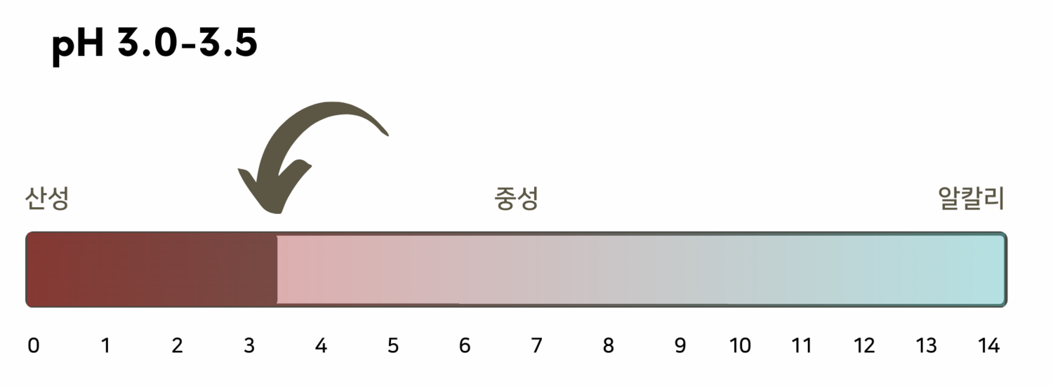 국내화장품법의 범위 안에서 허용되는 제품의 pH는 3.0에서 9.0입니다.