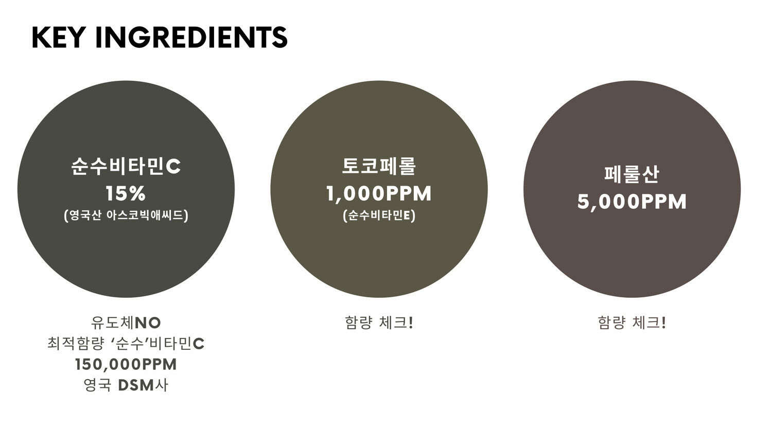 1. 강력한 미백 + 항산화(노화 완화) 성분인 순수 비타민C 최적 함량